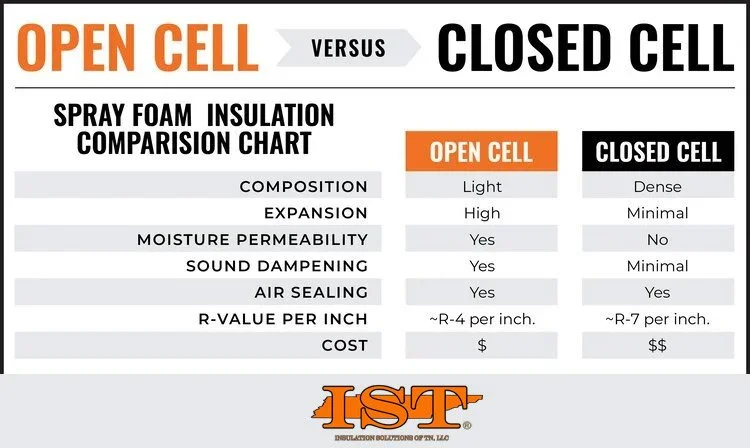 Once you've chosen spray foam for improved energy efficiency, the next decision is whether to use open-cell or closed-cell spray foam. Although both are applied the same way and provide excellent air sealing, they differ significantly in cell structure. Closed-cell spray foam is dense and rigid—similar to a spray-on truck bed liner—while open-cell foam is lighter and more sponge-like.
